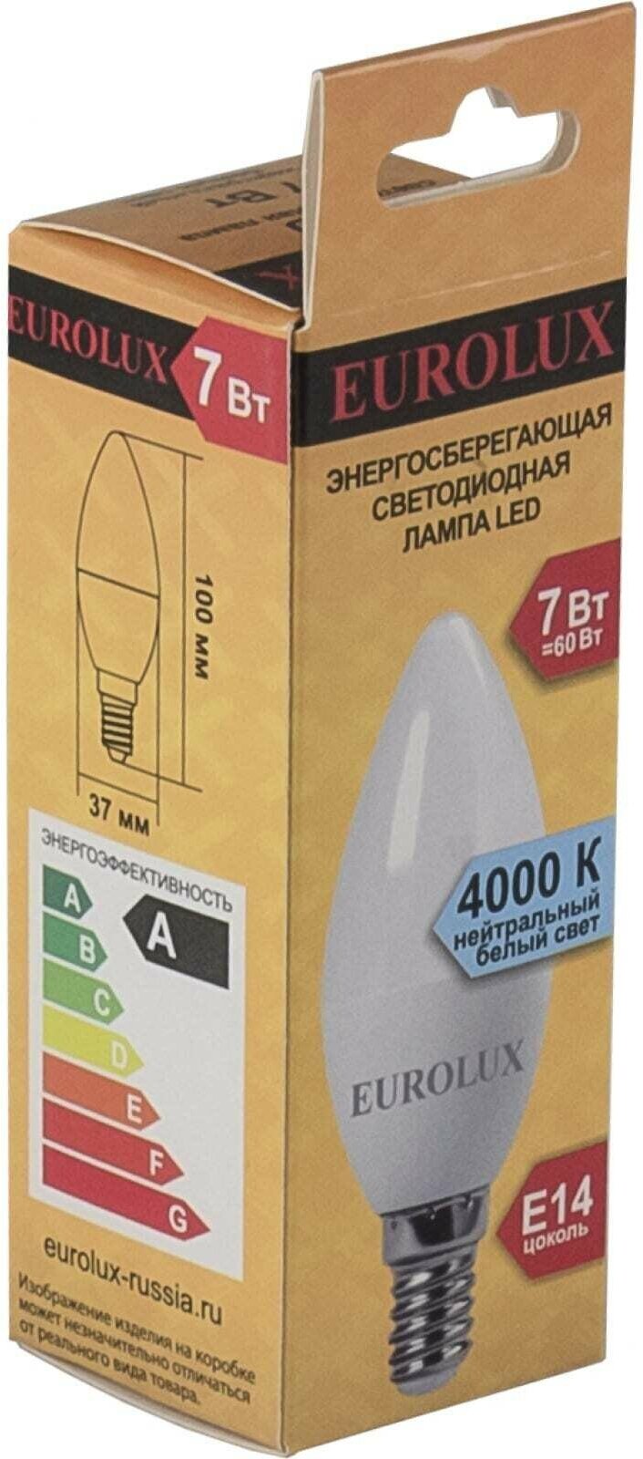 Лампа светодиодная 7W LL-E-C37-7W-230-4K-E14 свеча нейтральный (10) EUROLUX информация: