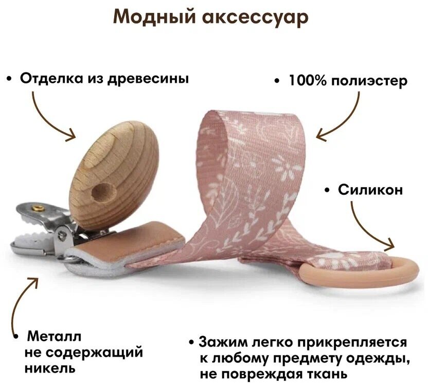 Клипса-держатель для пустышки Elodie Wood - Blushing Pink new 1 406 ₽