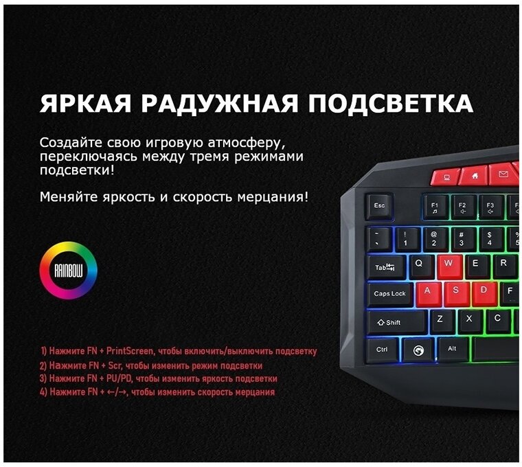 Игровая клавиатура Marvo K602 USB Gaming с подсветкой, ПК информация: