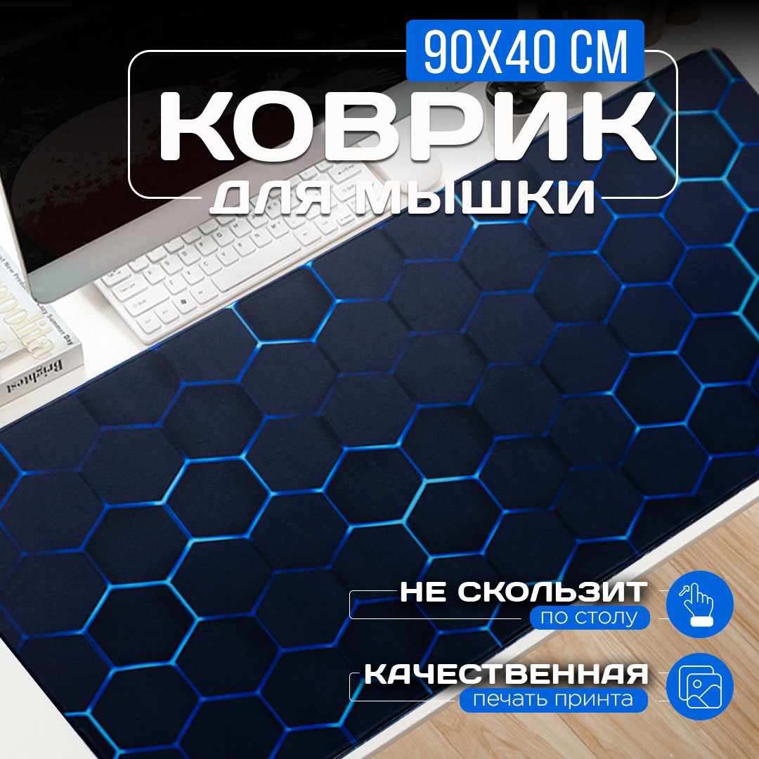 Большой игровой коврик для мышки с принтом, 90х40 см, соты. Компьютерный ковер с 3D дизайном под клавиатуру и мышь на весь стол.