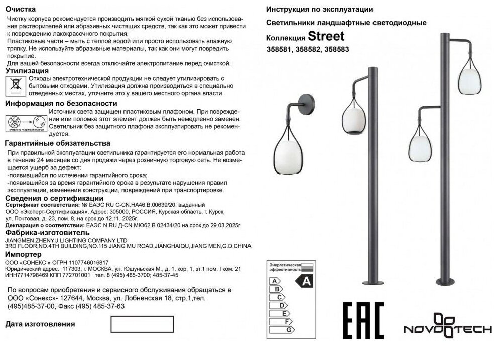 Садово- парковый светодиодный светильник Novotech Roca 358583 информация: