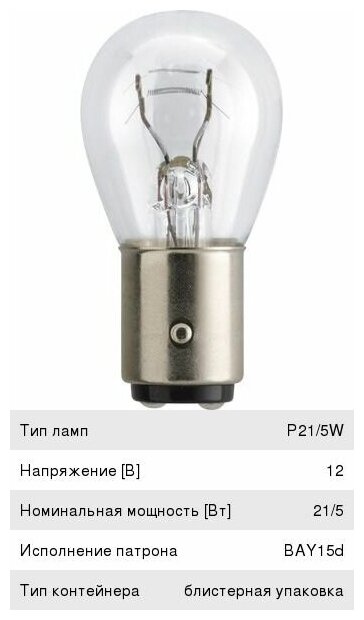 PHILIPS 12499B2 Лампа 12V P21/5W 21/5W PHILIPS 2 шт. блистер 12499B2 1шт информация: