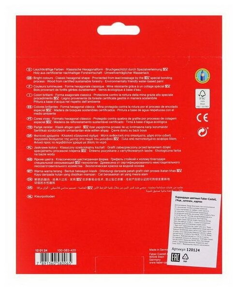 Карандаши цветные FABER-CASTELL ECO замок 24 цвета с точилкой, в картонной коробке