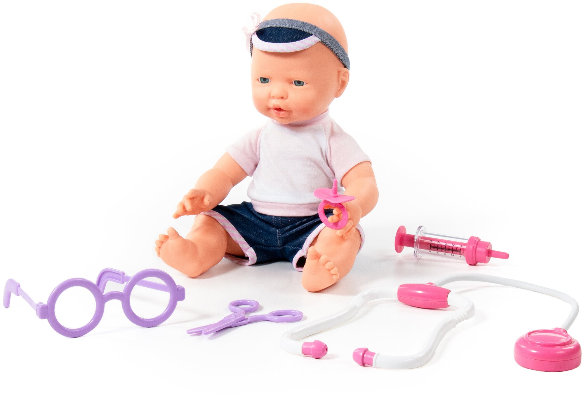 | Комплектация | - пупс; - соска; - шприц; - ножницы; - очки; - стетоскоп. |