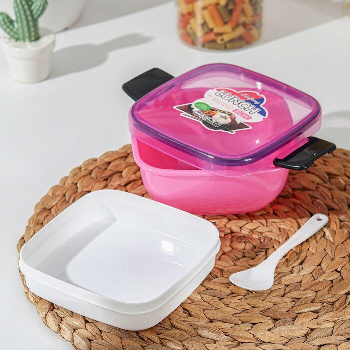 One Day Контейнер пластиковый пищевой «Уют», 14×14×9 см с крышкой, приборами и вкладышем, цвет микс 523 ₽