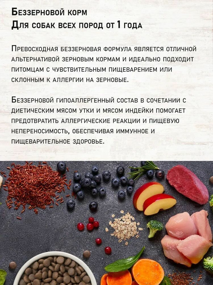 Корм сухой Grandorf утка с индейкой для взрослых собак средних и крупных пород, 1 кг информация:
