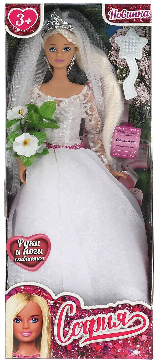 Кукла София невеста, 29 см (в комплекте букет и расческа) в коробке