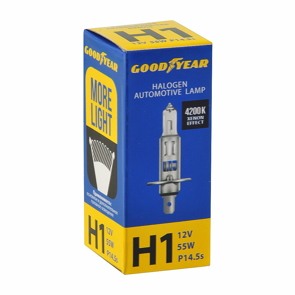 Лампа автомобильная Goodyear, галогенная, Н1, 12 В, 55 Вт, P14,5s, блистер