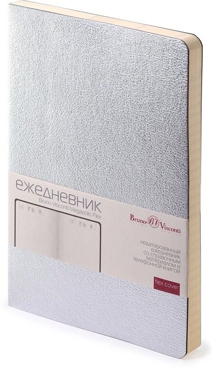 Ежедневник Bruno Visconti Megapolis Flex недатированный, искусственная кожа, А5, 136 листов, серебристый, цвет бумаги тонированный