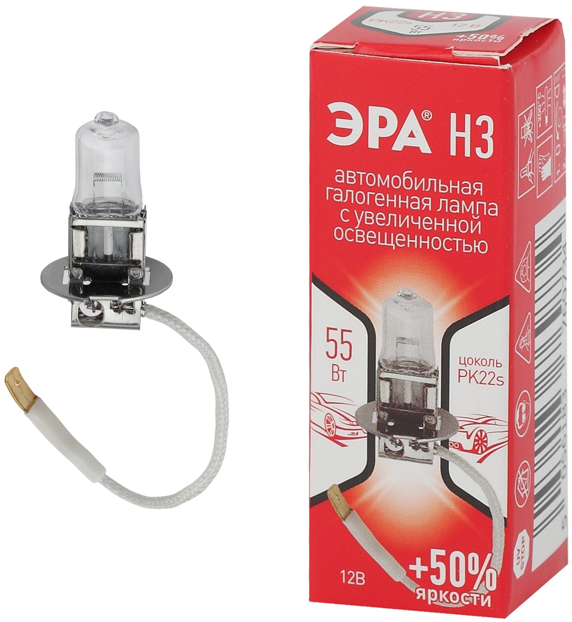 ЭРА Б0036775 Лампа H3 12V 55W +50% PK22s (лампа головного света, противотуманные огни)