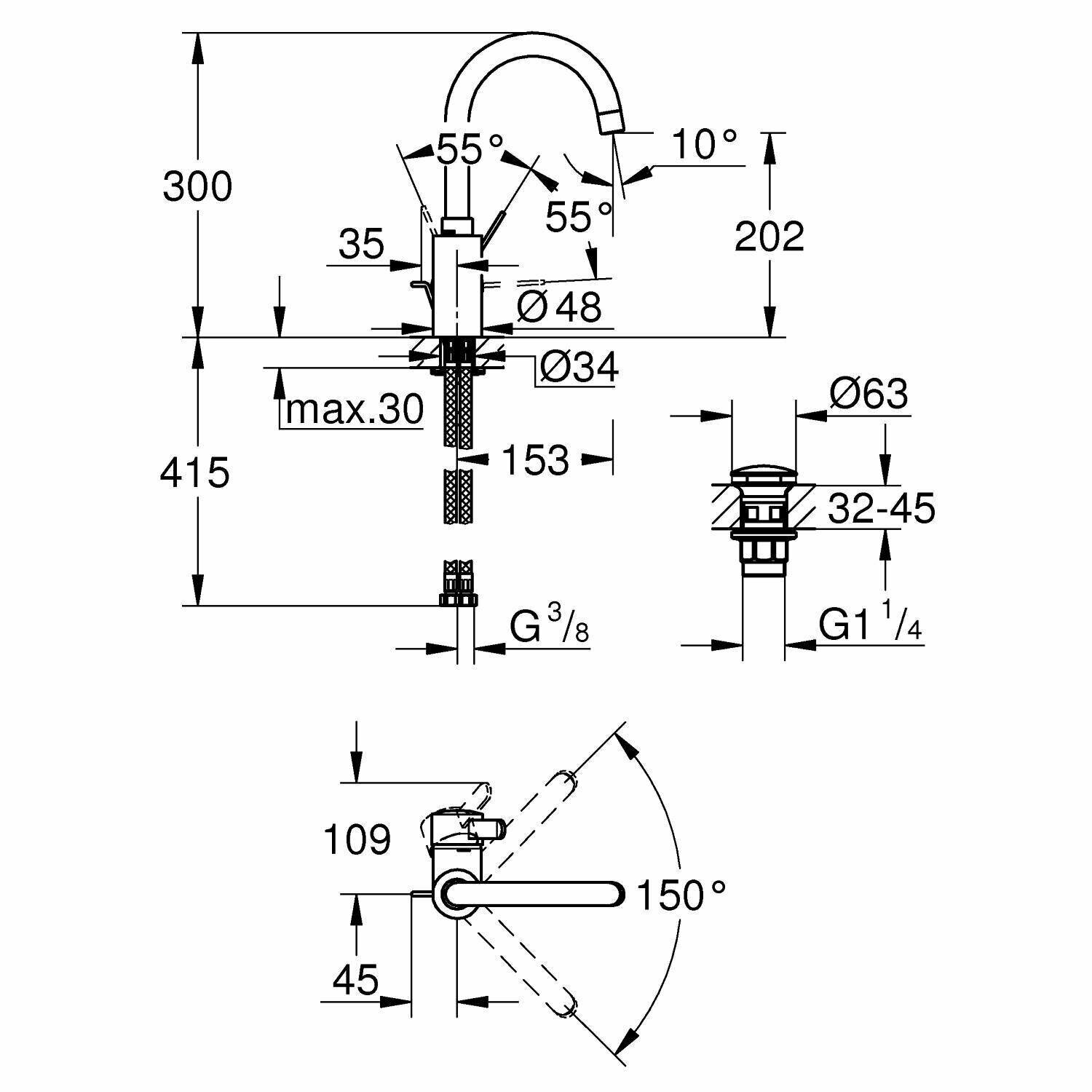 Смеситель для раковины GROHE Eurosmart Cosmopolitan с нажимным сливным гарнитуром, L-Size, хром (23933001) информация: