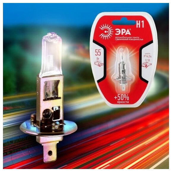 ЭРА Автолампа H1 12V 55W +50% P14,5s BL (лампа головного света, противотуманные огни) (10/100/270
