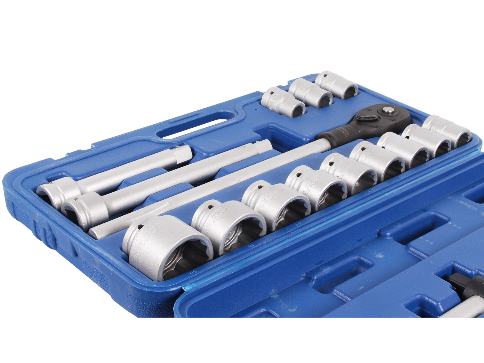 | Головки торцевые подробно | 3/4": 22, 24, 27, 30, 32, 36, 38, 41, 46, 50 мм; трещотка 3/4"; удлинитель 3/4": 100, 200 мм; вороток т-образный 3/4": 450 мм |