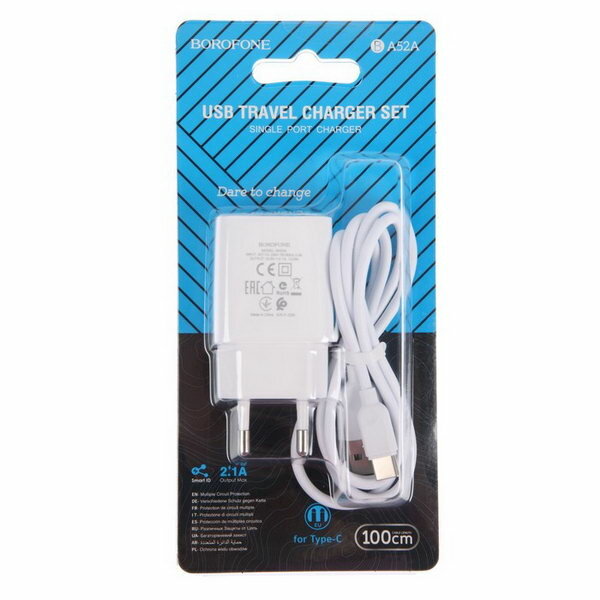 Сетевое зарядное устройство BA52A, USB, 2.1 А, кабель Type-C, 1 м, белое информация: