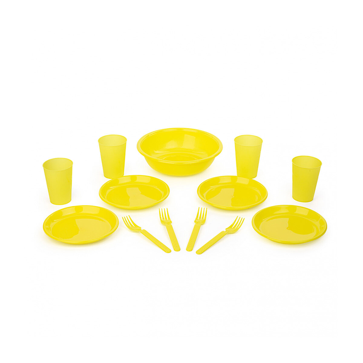 | Комплектация | - 4 вилки; - 4 тарелки; - 4 стакана; - 1 салатник. |