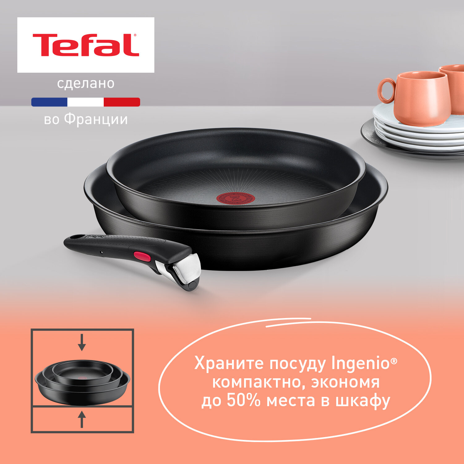 10 цен на Набор посуды со съемной ручкойTefal Ingenio Unlimited L7639032, 3 предмета, 22/26 см, подходит для индукции