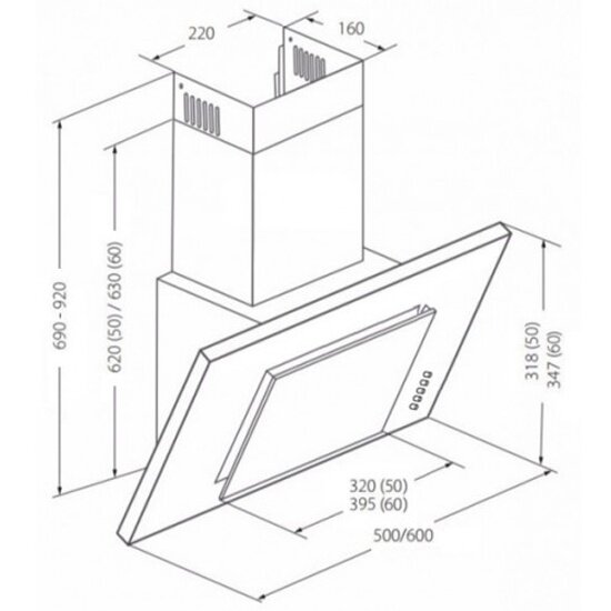 Вытяжка кухонная наклонная Libhof LV-4060 black-silver / тройной алюминиевый жировой фильтр / сенсорное управление