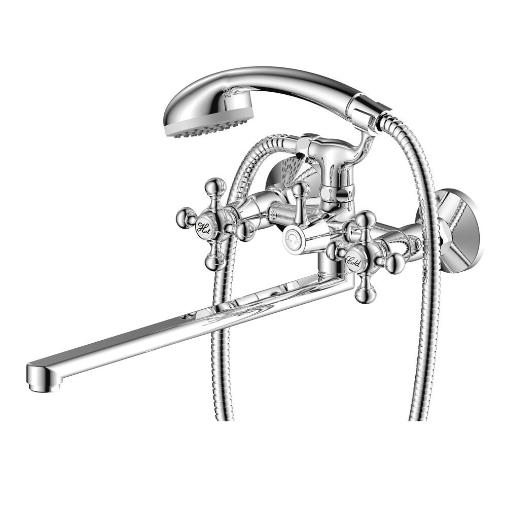 Смеситель для ванны Orange ALFI двухвентильный с душевым набором, глянцевый хром