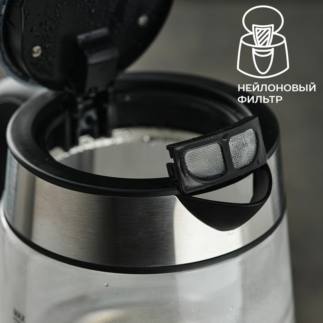 Чайник электрический стеклянный LEX LXK 30010-1, объем 1,2 л, подсветка.