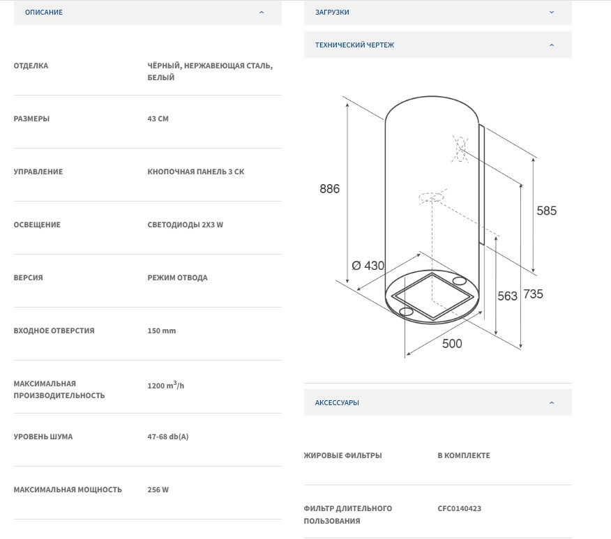 | Диаметр патрубка воздуховода | 150 мм |
