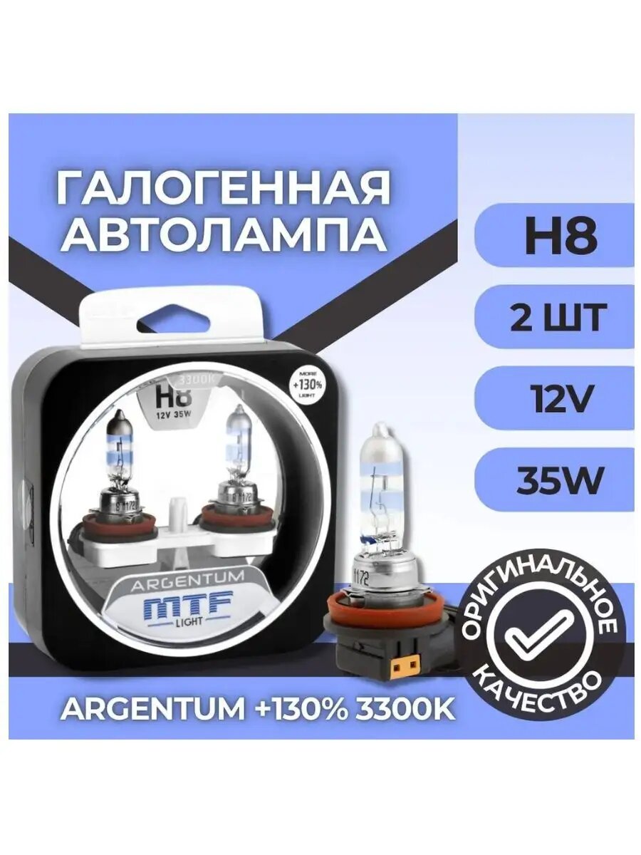 Лампа серия Argentum +130% 3300K H8 12V 55W MTF LIGHT H3A1208 информация: