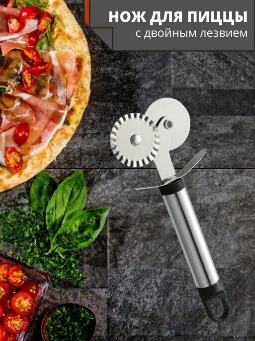 10 цен на Доляна Нож для пиццы и теста Доляна «Помощник», 18 см, двойной, цвет чёрный