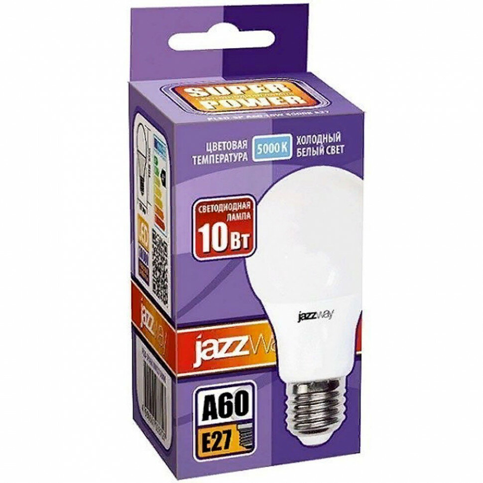 Лампа светодиодная jazzway 1033727, E27, A60, 10 Вт, 5000 К