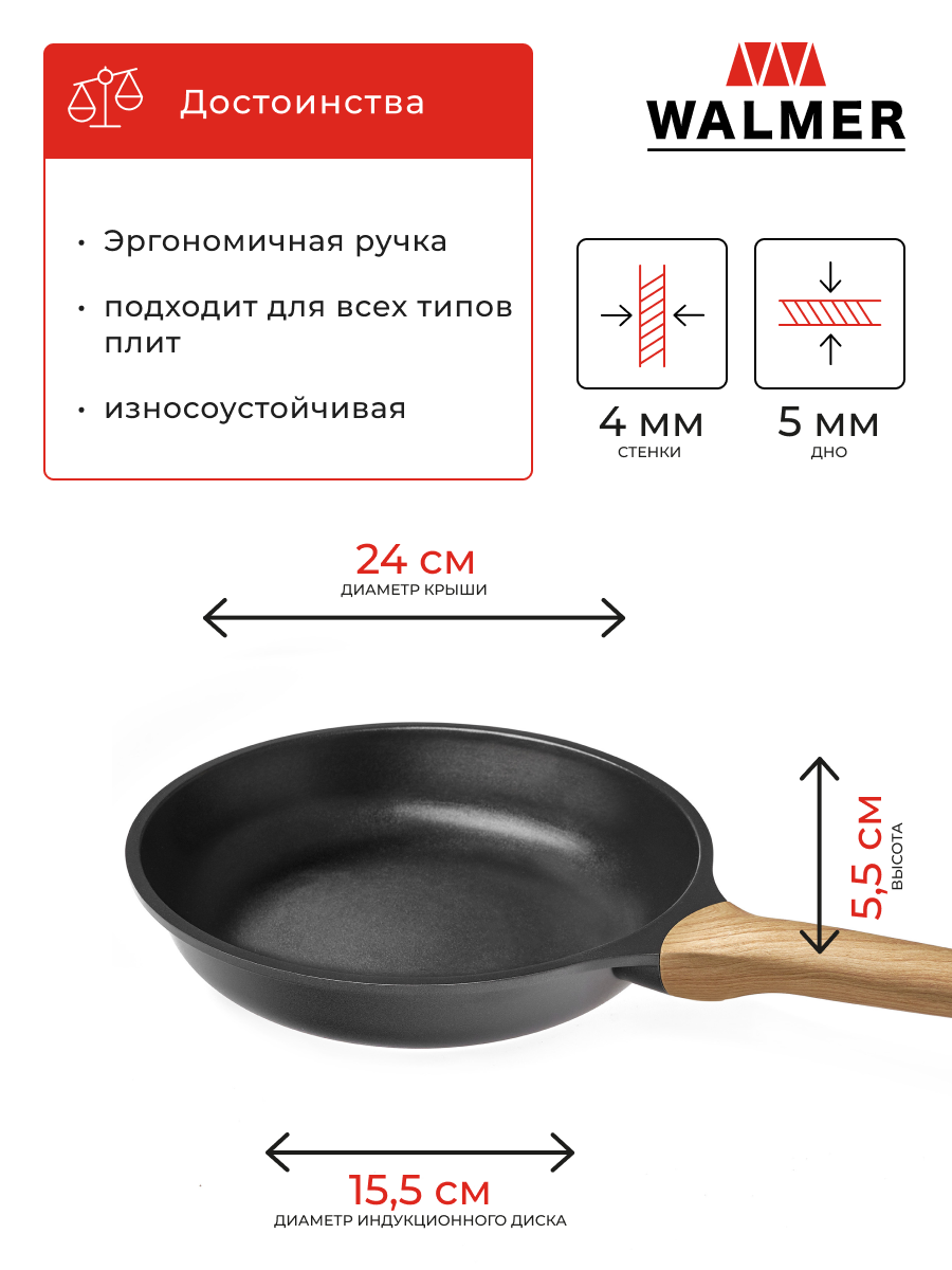 Отзывы на Сковорода Walmer New Forest с антипригарным покрытием, 24 см, цвет черный