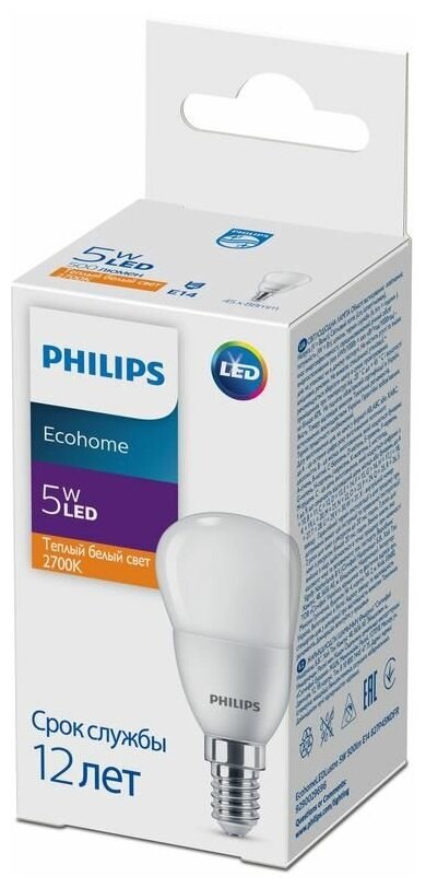Отзывы на Лампа светодиодная Ecohome LED Lustre 5Вт 500лм E14 827 P46, PHILIPS 929002969637 (1 шт.)