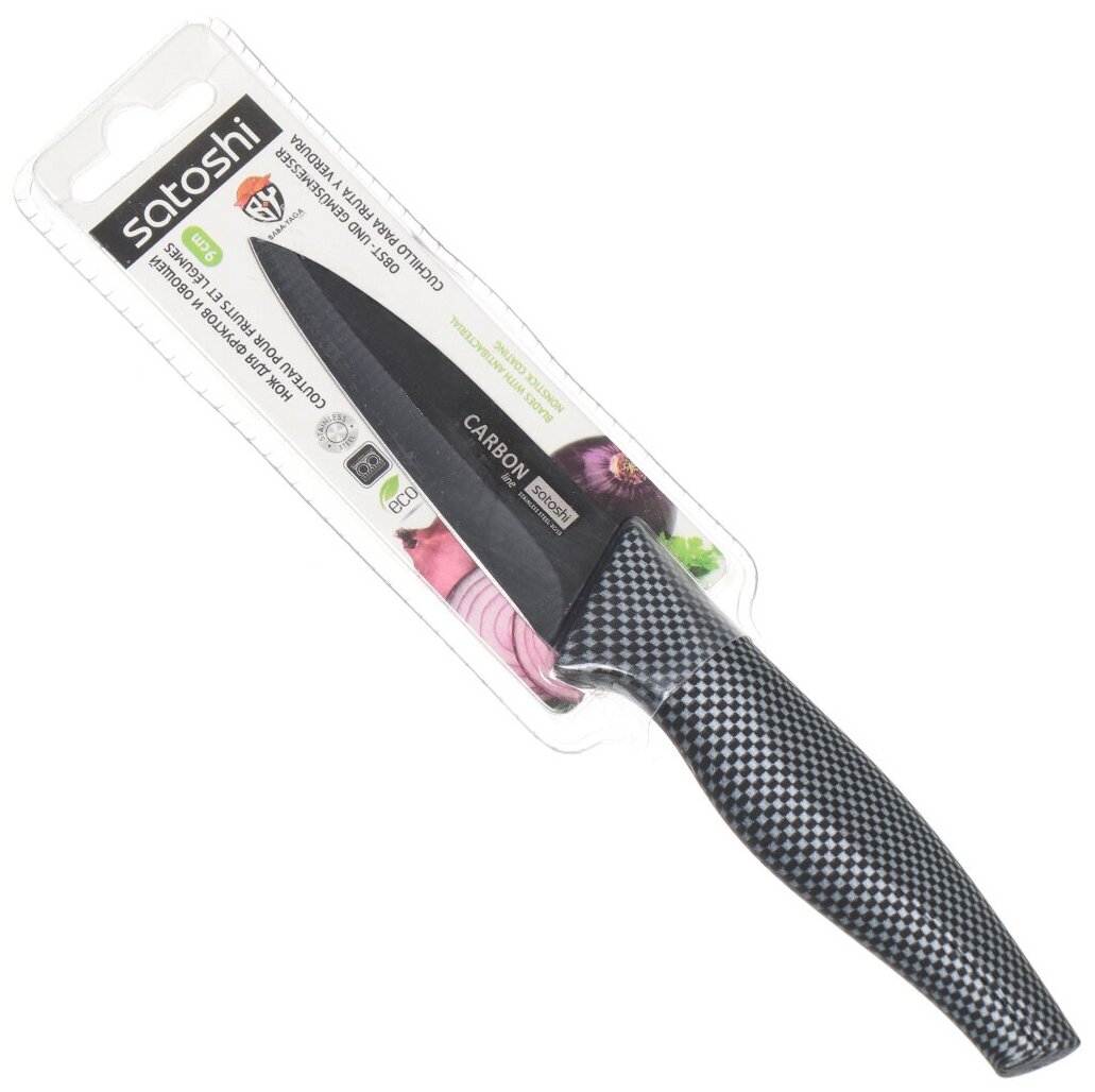 Нож кухонный SATOSHI Карбон овощной 9 см, маленький нож для чистки овощей, фруктов с антиналипающим покрытием