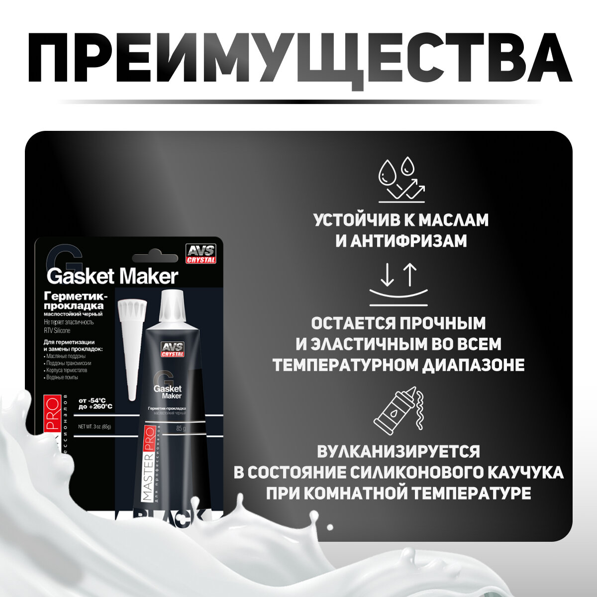 Герметик-прокладка маслостойкий MasterPro, черный, 85 гр. AVS AVK-346 информация: