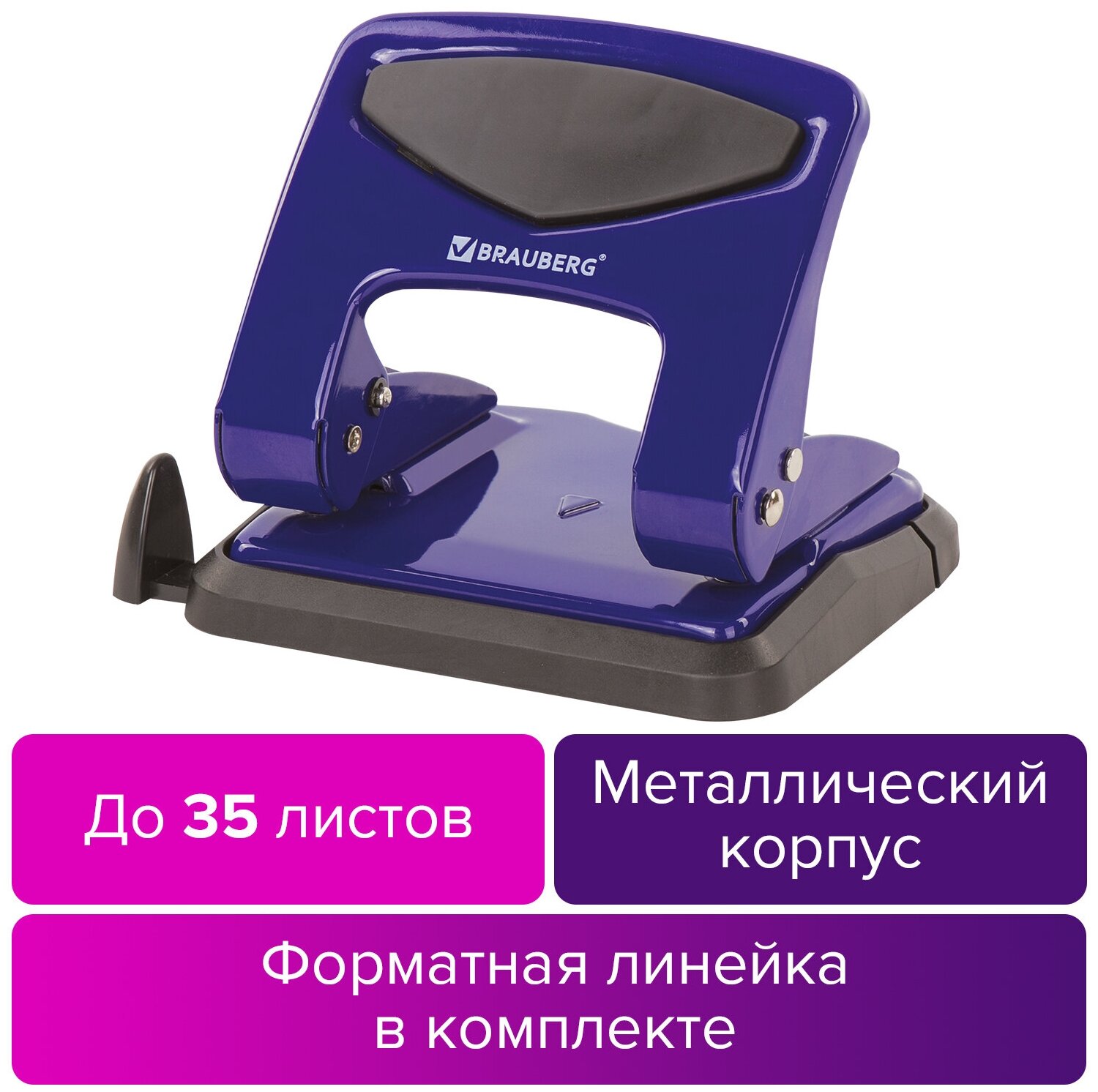 Дырокол BRAUBERG PN-150M 35 листов, 1 шт., синий