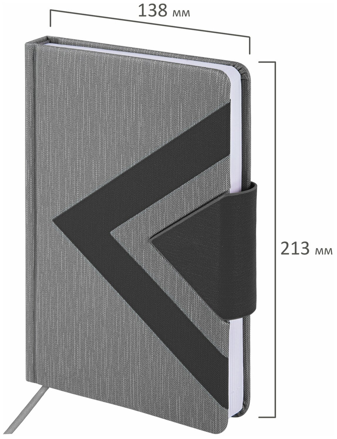 Ежедневник недатированный А5 138x213 мм BRAUBERG "Waves" под кожу, застежка 160 л., черный/серый, 111875, 1 шт информация: