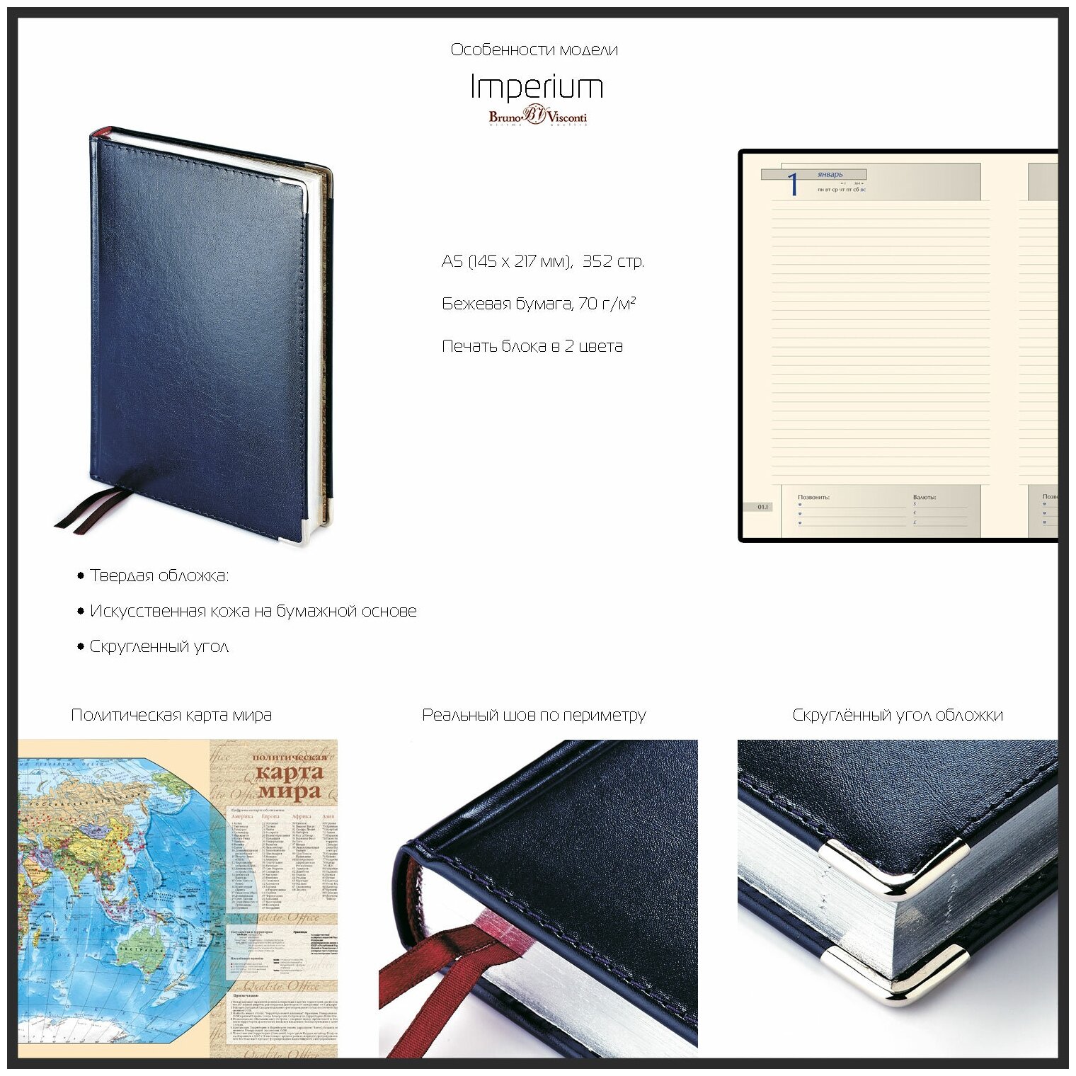Ежедневник полудатированный Bruno Visconti Imperium натуральная кожа А5 208 листов черный (золотистый обрез, 145x216 мм) (артикул производителя 3-023/120)