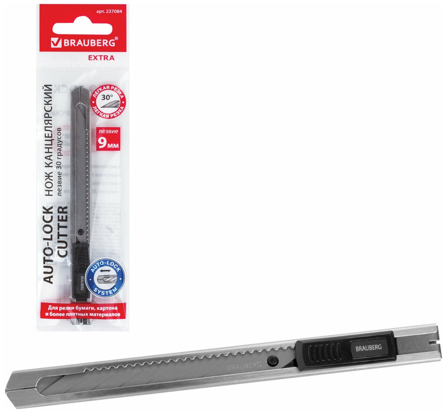 Нож канцелярский Brauberg 9 мм, "Extra 30", металлический, лезвие 30°, автофиксатор (237084)