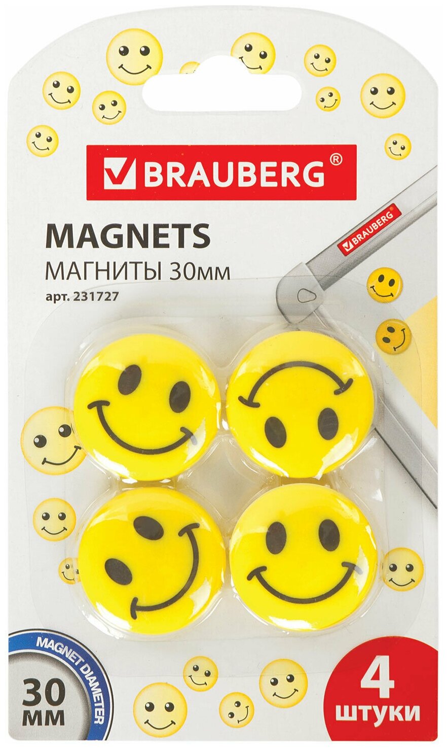 Brauberg Магниты диаметр 30 мм, 4 шт., смайлики, 231727 информация: