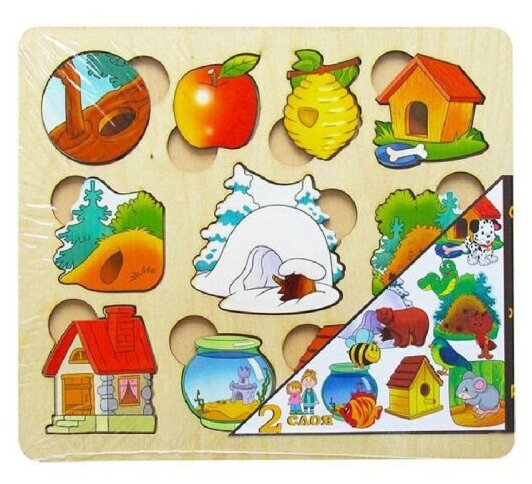 Пазл-рамка для малышей "Где чей домик?" (дерево, 2 слоя) Нескучные Игры 7993 Р95158 677 ₽