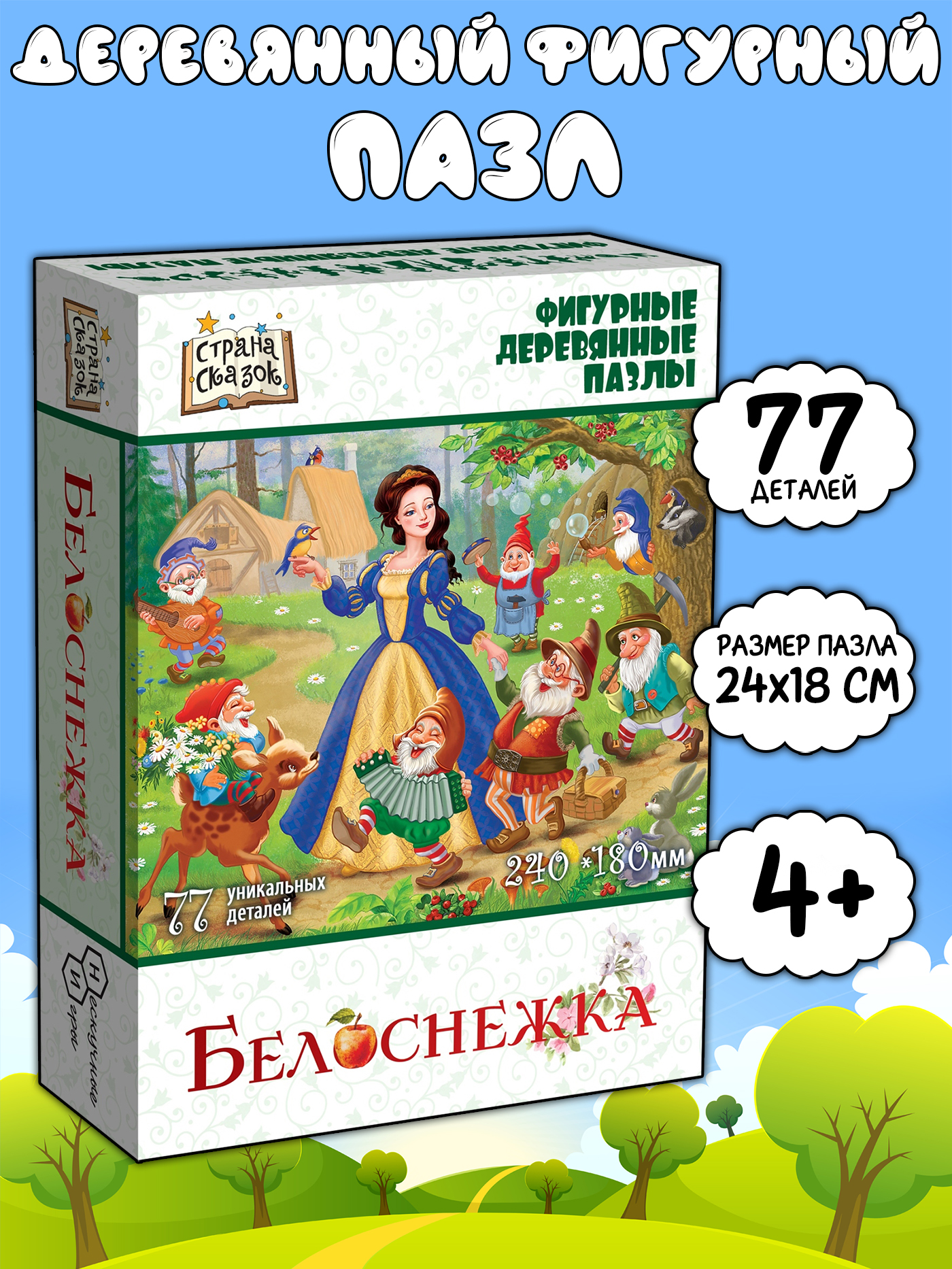 Фигурный деревянный пазл Белоснежка, 77 деталей