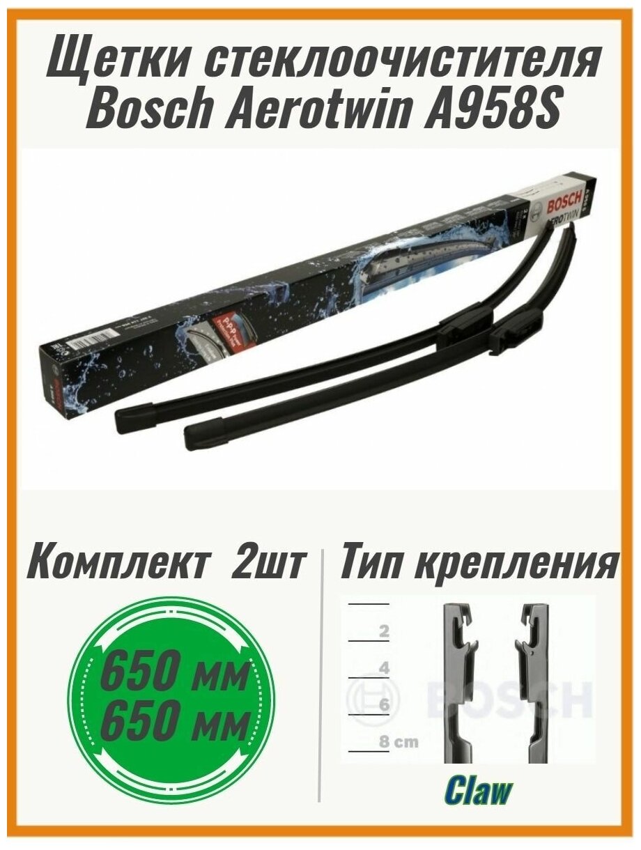 Щетка стеклоочистителя комплект Bosch Aerotwin A958s, 650 мм / 650 мм, бескаркасная, 2шт, 3397118958 .