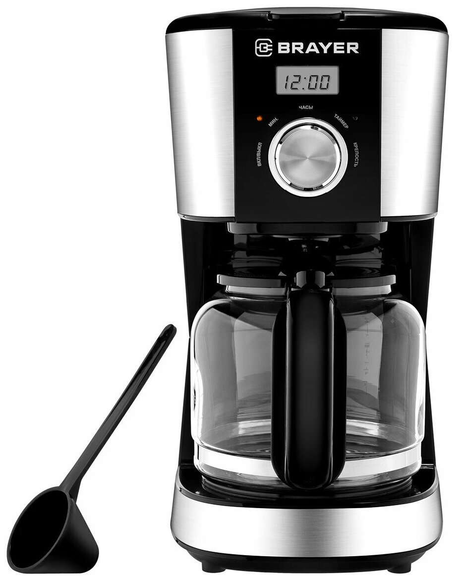 Кофеварка капельная BRAYER BR1122, 900 Вт, LCD-дисплей, 1,5 л, черный/серебристый