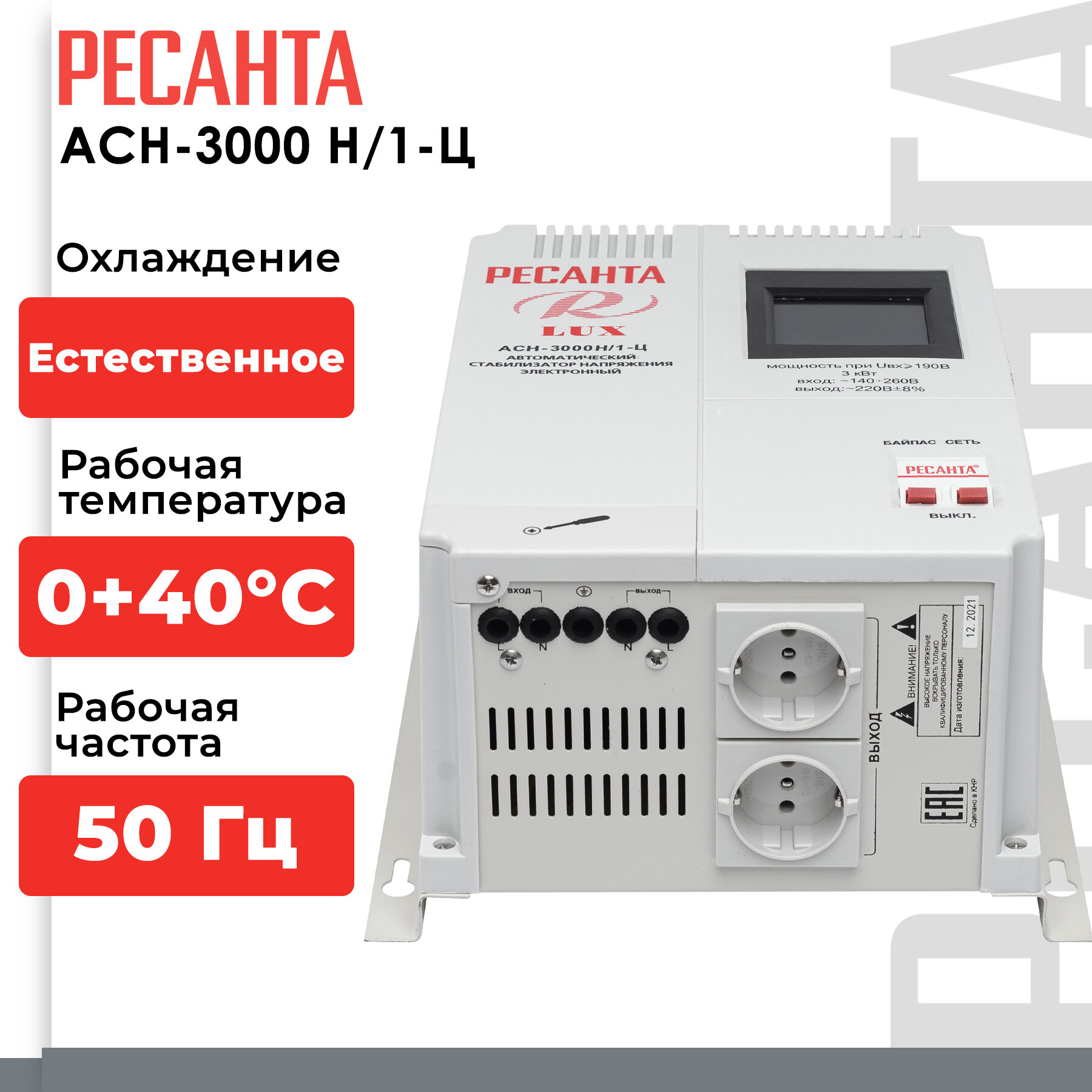Отзывы на Стабилизатор напряжения однофазный РЕСАНТА LUX АСН-3000Н/1-Ц белый 3000 Вт 260 мм 155 мм 310 мм 8.9 кг