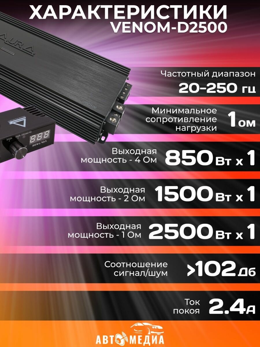 Автомобильный усилитель Aura VENOM-D2500 информация: