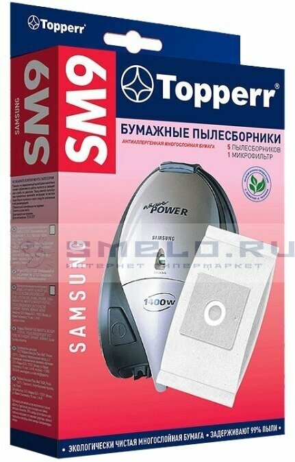Мешок для пылесоса (пылесборник) бумажный TOPPERR SM7, SAMSUNG, комплект 5 шт., 1031, 1компл. в наборе 890 ₽