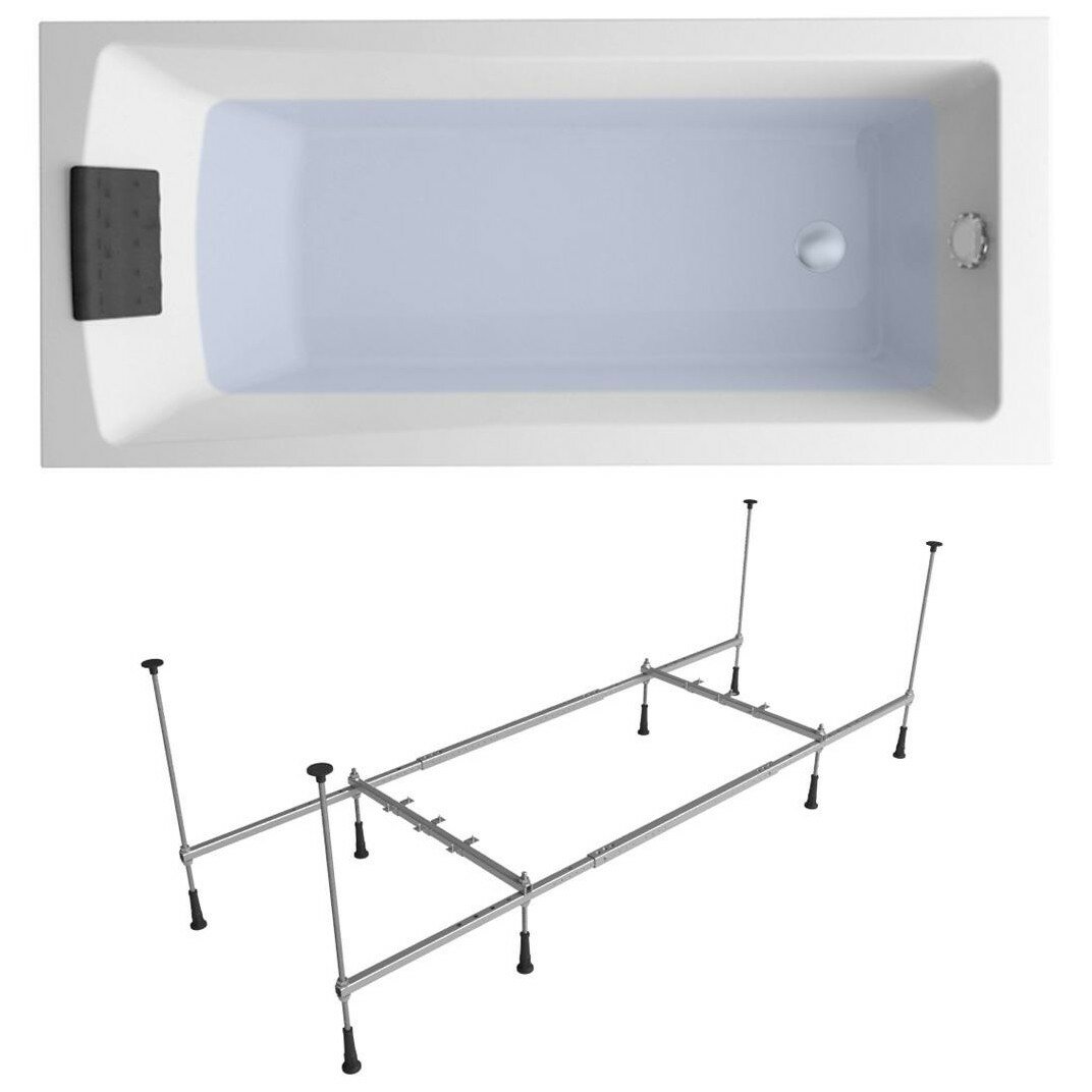 Ванна акриловая 180х80 Lavinia Boho One S1-3701008P в наборе 3 в 1: прямоугольная ванна 180 х 80 см, усиленный металлический каркас, мягкий подголовник