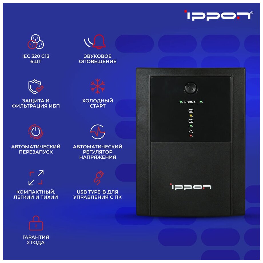 Источник бесперебойного питания Ippon Back Basic 1500 1500VA Черный (1108030)