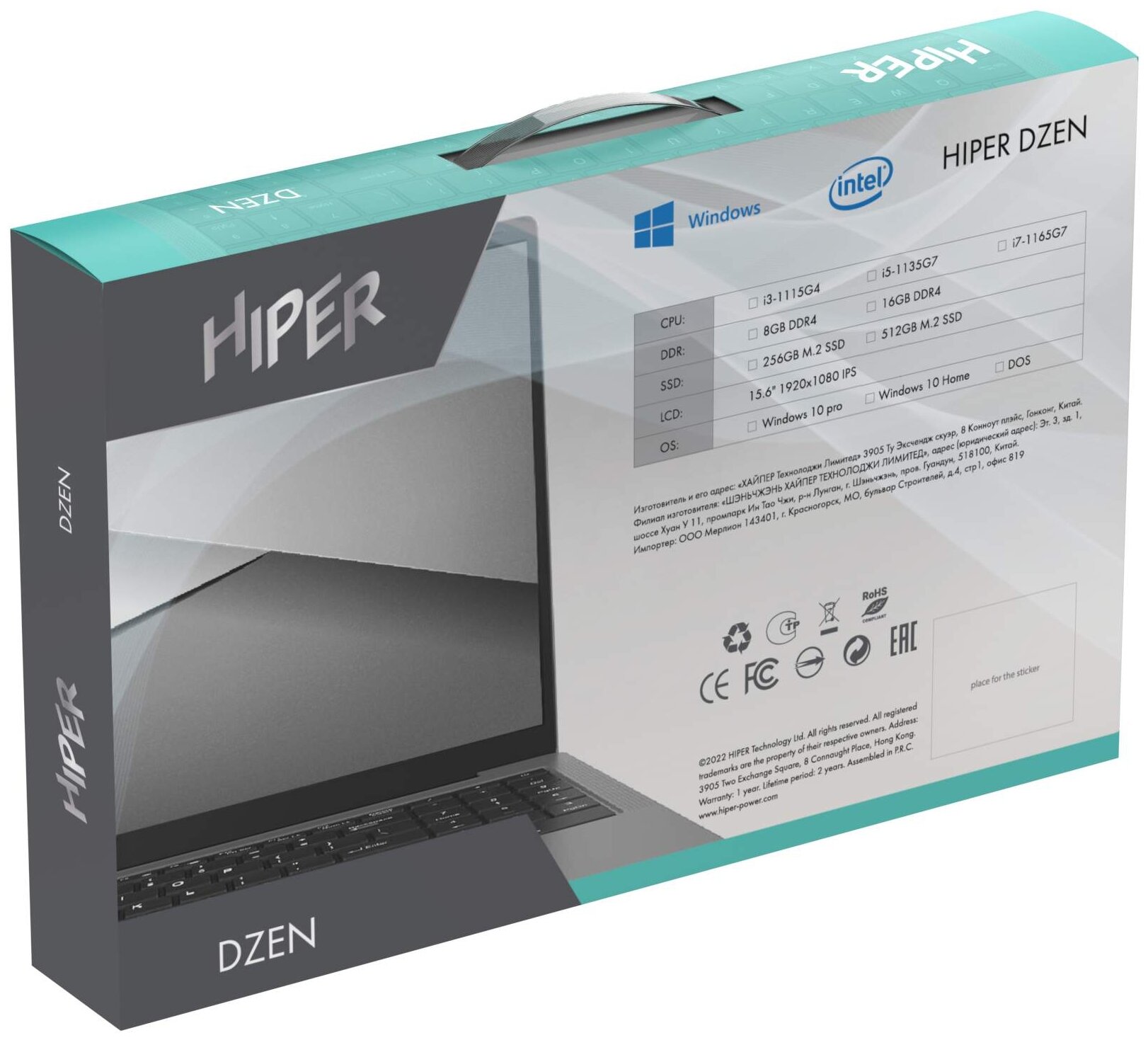 Hiper Dzen MTL1569 Grey 46XJHOSU (Intel Core i5 1135G7 2.4 Ghz/8192Mb/256Gb SSD/Intel Iris Xe Graphics/Wi-Fi/Bluetooth/Cam/15.6/1920x1080/Windows 10)