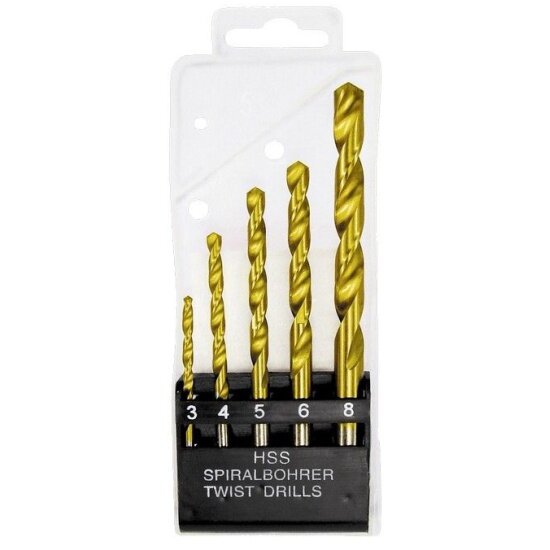 Набор нитридтитановых сверл по металлу, 3-4-5-6-8 мм, HSS, 5 шт., пласт. кор. цил. хвост. Matrix 72383