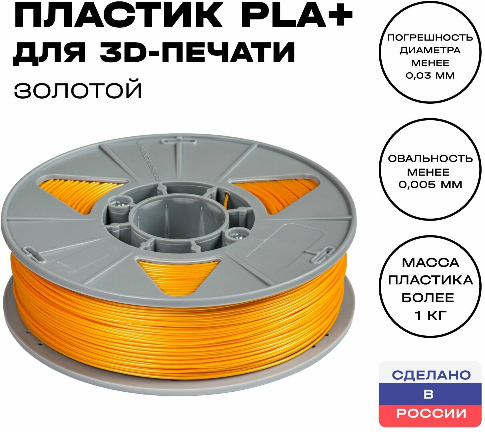 Пластик для 3D принтера PLA (ПЛА) ИКЦ, филамент для 3Д печати, 1,75 мм, 1 кг, золотой