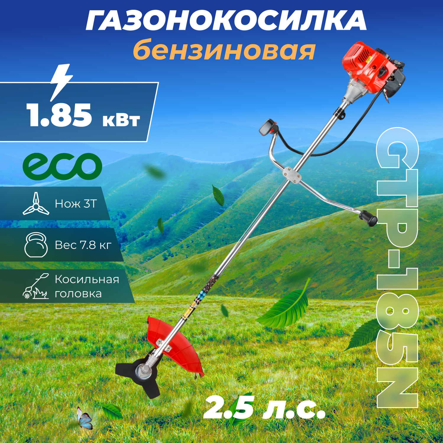 Мотокоса ECO Gtp-185n с ножом и головкой (1.85 кВт, 2.5 л.с., 52.0 см3, лёгкий запуск, нож 255х25.4
