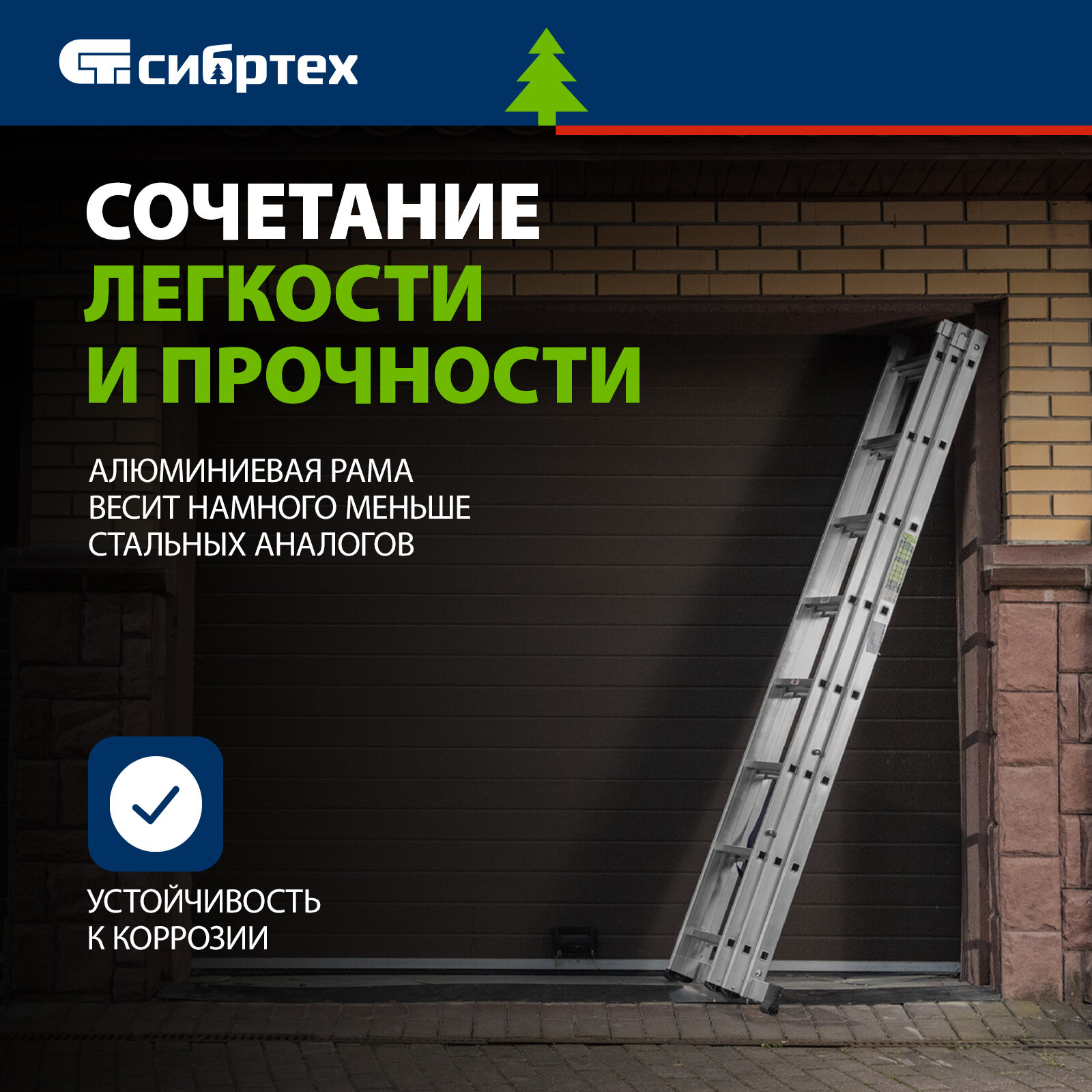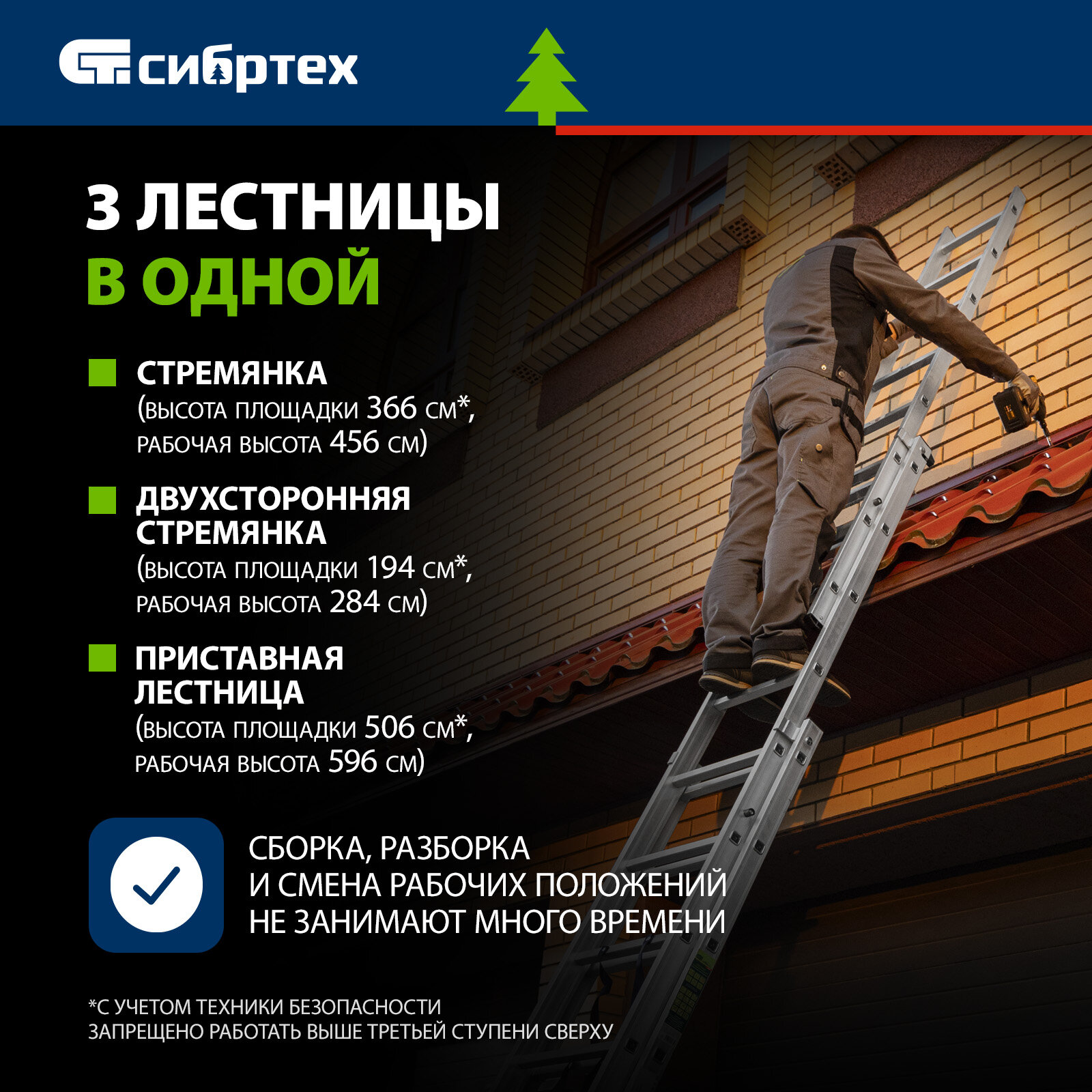 Отзывы на Лестница Сибртех 3 х 8 ступеней, алюминиевая, трехсекционная 97818